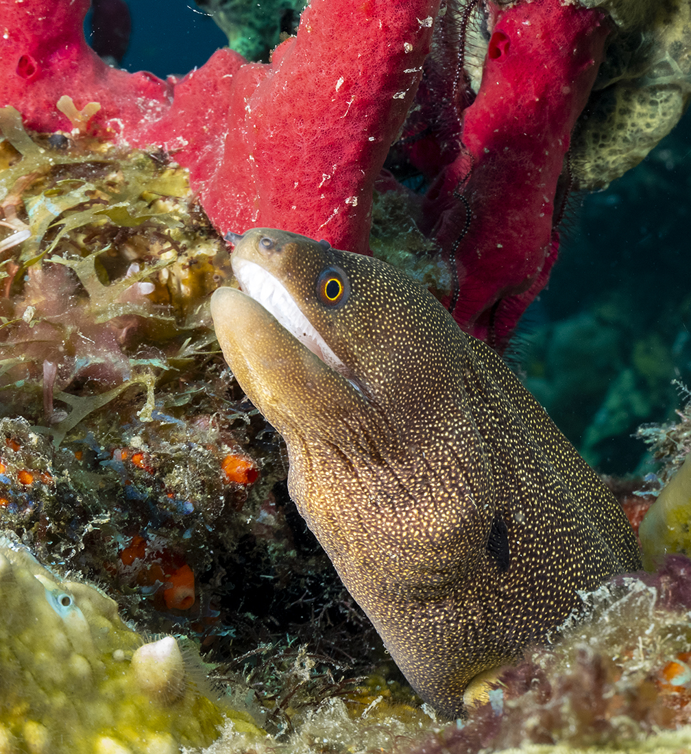 The pilings provide habitat and shelter for a variety of marine denizens, but it is the corals and sponge growth that truly set this site apart, as they create a wonderful hodgepodge of shapes and hues. Topping the list of attention grabbers is a bounty of orange cup corals along a variety of orange, yellow and purple tube sponges covering the pilings long cylindrical formations. Adding to these vibrant displays, schools of Creole wrasses and bogas can suddenly appear, turning an otherwise peaceful spot into a melee of activity.