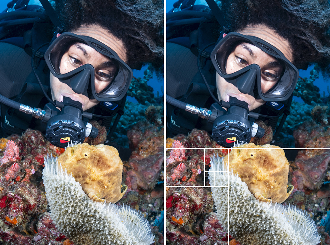 In a pinch, I have incorporated CFWA shooting strategies to capture surprisingly small subjects, from frogfish and seahorses to even a group of 1-inch-long cleaning gobies resting on a brain coral.