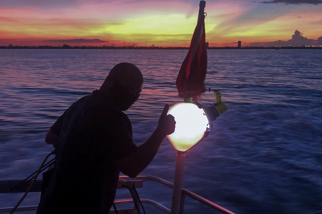 An open ocean diving adventure by night offshore of South Florida’a Palm Beach Coast.