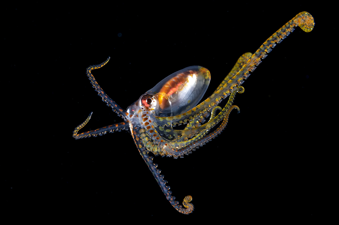Other deep-water denizens include cephalopods such as blanket octopus and diamond squid that are as colorful and ornate as they are mysterious.