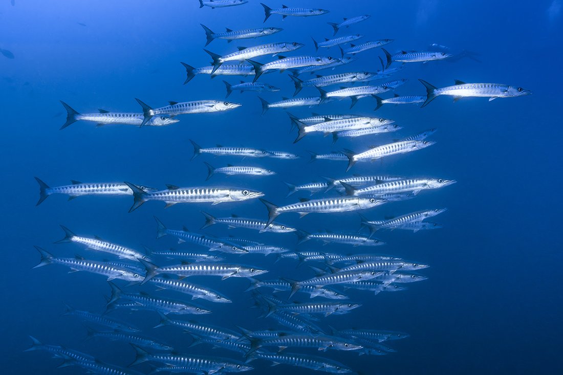 Underneath the Scuba Scene, a place where oceanic whitetip sharks are known to sometimes to hang out, we had instead had a robust 4-foot plus greater barracuda that would sometimes venture out from the liveaboard’s shadow to look us over.
