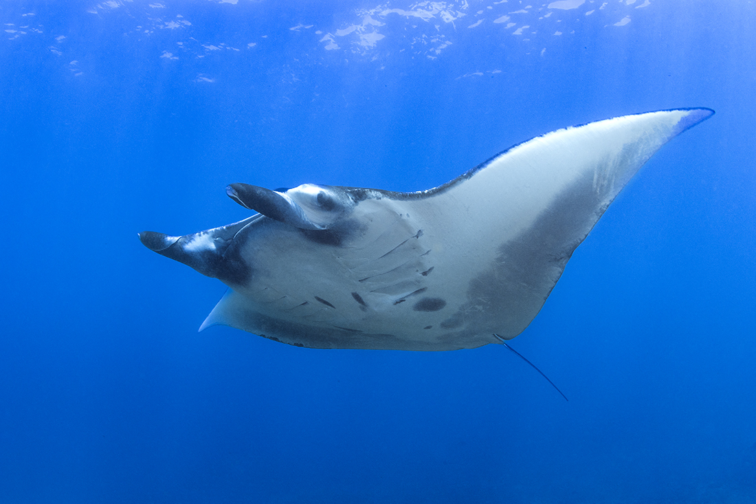 For years, I have heard plenty about the big D’s reputation as an attraction point to large variety of pelagic marine life from dogtooth tuna to oceanic whitetip and hammerhead sharks, to even manta rays. After arriving there for a two day stay in our itinerary, I was able to see for myself that there is plenty of truth to this. Even with the water temperature excessively warm (88 F / 31 C is often the norm during the peak of summer) for larger forms of marine life, we still manage to take a few sightings scalloped hammerhead sharks cruising the depths along a short flyby by a moderate size manta.